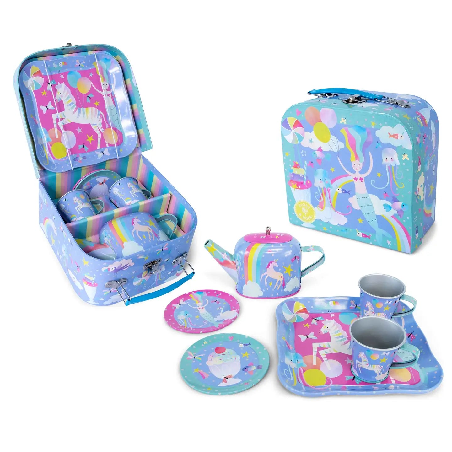 The tea set’s pretty box comes with a carry handle making it easy to take from place-to-place. FEATURES: Suitable for ages 3+ 7 piece set Handy carry case to store everything away Perfect for imaginative or group play! Eco friendly ECO-FRIENDLY BENEFITS: Printed with soy inks Fully recyclable DIMENSIONS: Tea set box size: 23 x 17 x 8.5cm