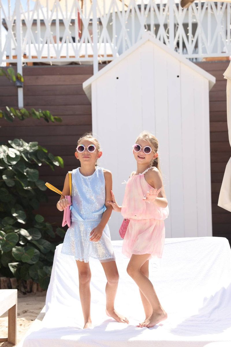 • Make a sparkling entrance with this set, adorned with shimmering sequins and charming bow details on the top.