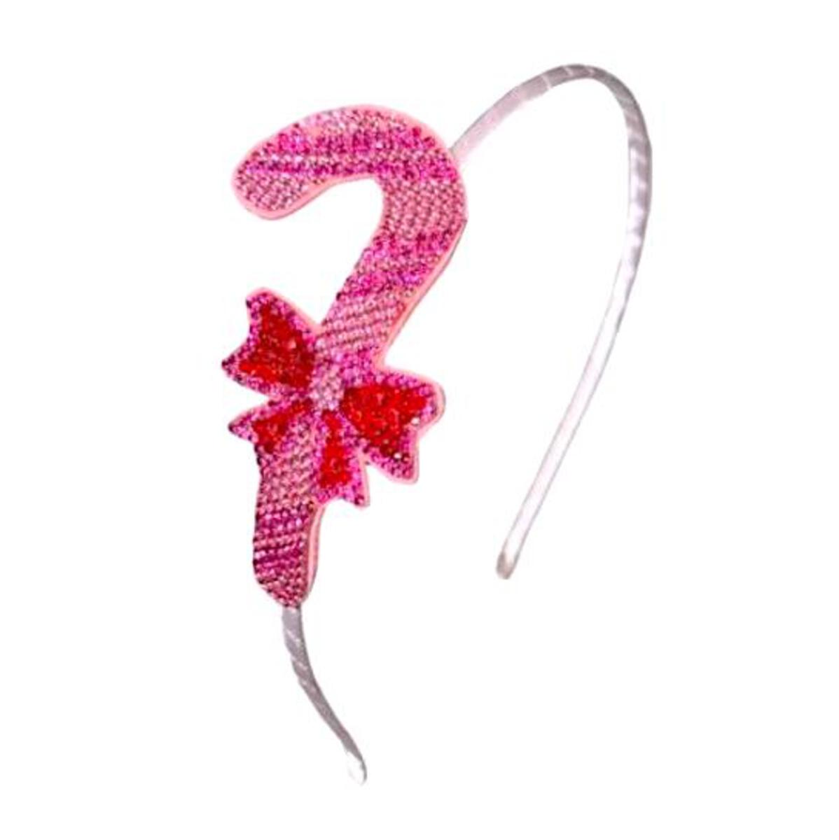 This season, make a statement with an extra-sparkly look! Our Candy Cane Crystalized Headband features a festive candy cane topped with a bow, all fully crystallized for a dazzling effect. Perfect for adding a bit of extra cheer to your holiday celebrations!