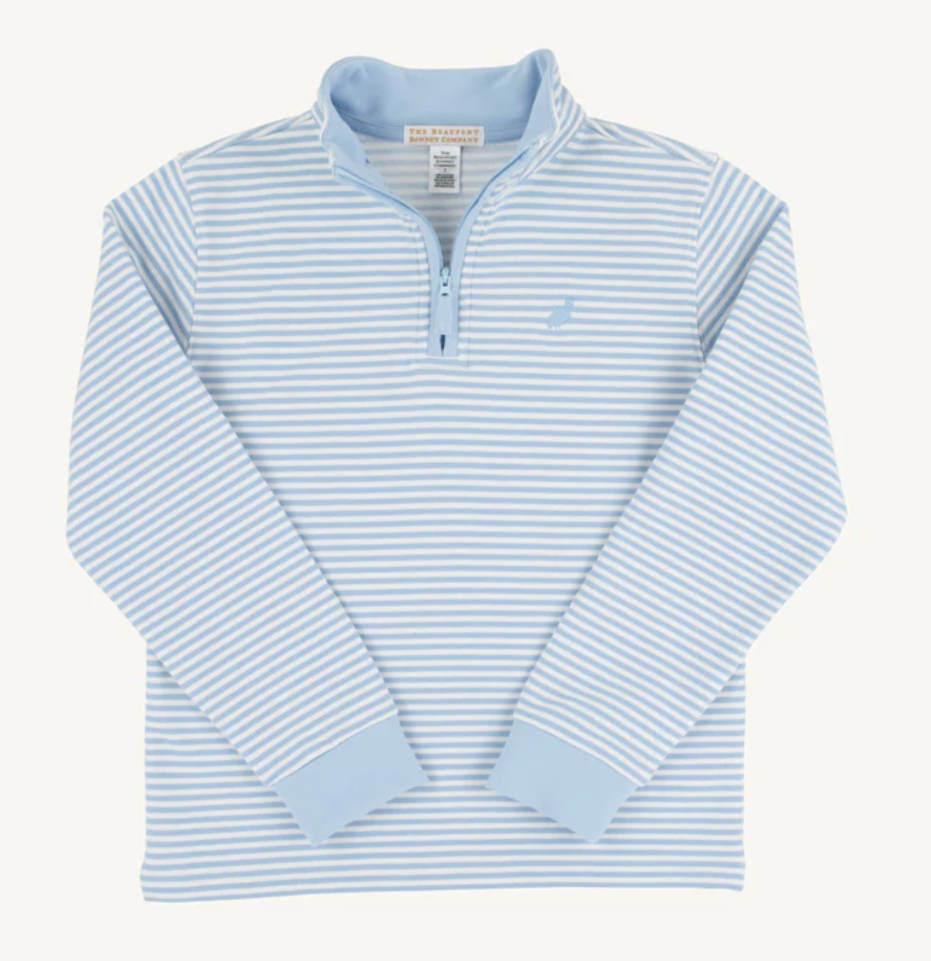 Our Hayword Half-Zip in classic Beale Street Blue Stripe with Beale Street Blue Stork is the perfect layering piece for the stylish young gentleman. This versatile boys' pullover features timeless stripes and a convenient half-zip design that's ideal for school days, weekend outings, or any occasion that calls for preppy style. Crafted for lasting comfort and easy movement, it's an everyday essential that coordinates perfectly with our collection.