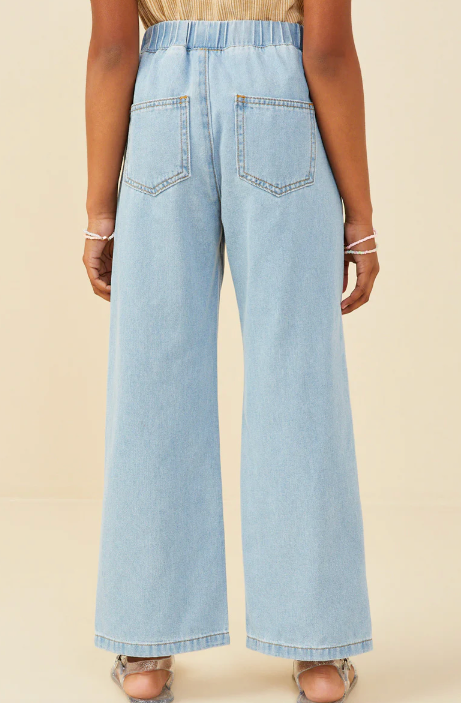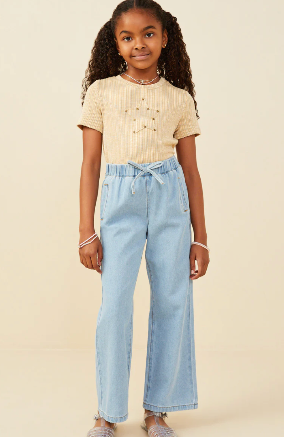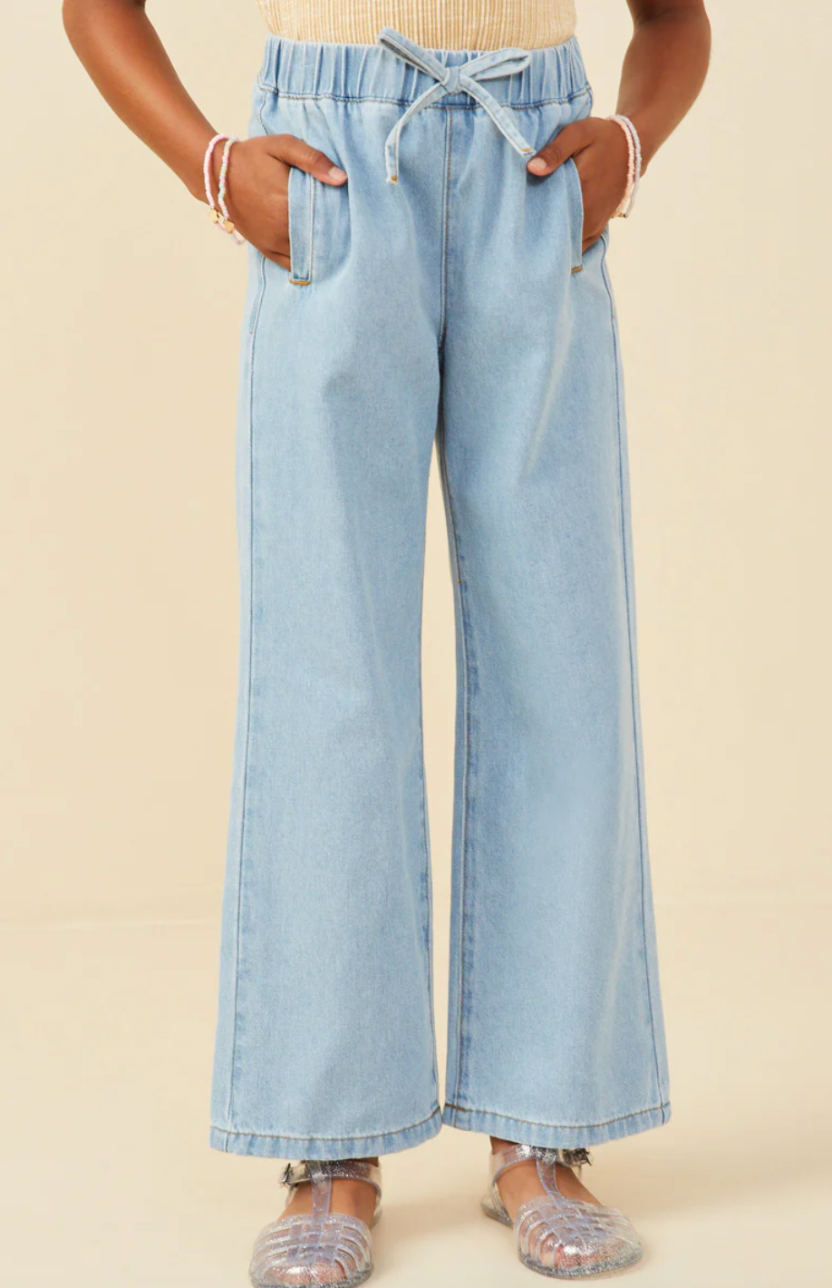 Our Wide Leg Drawstring Waist Denim Pants Features: