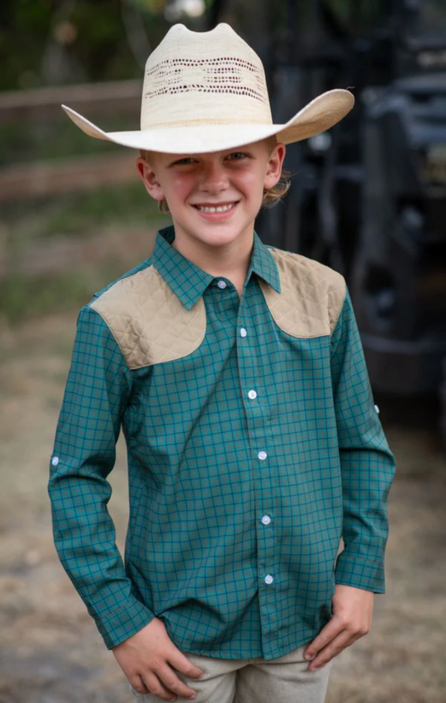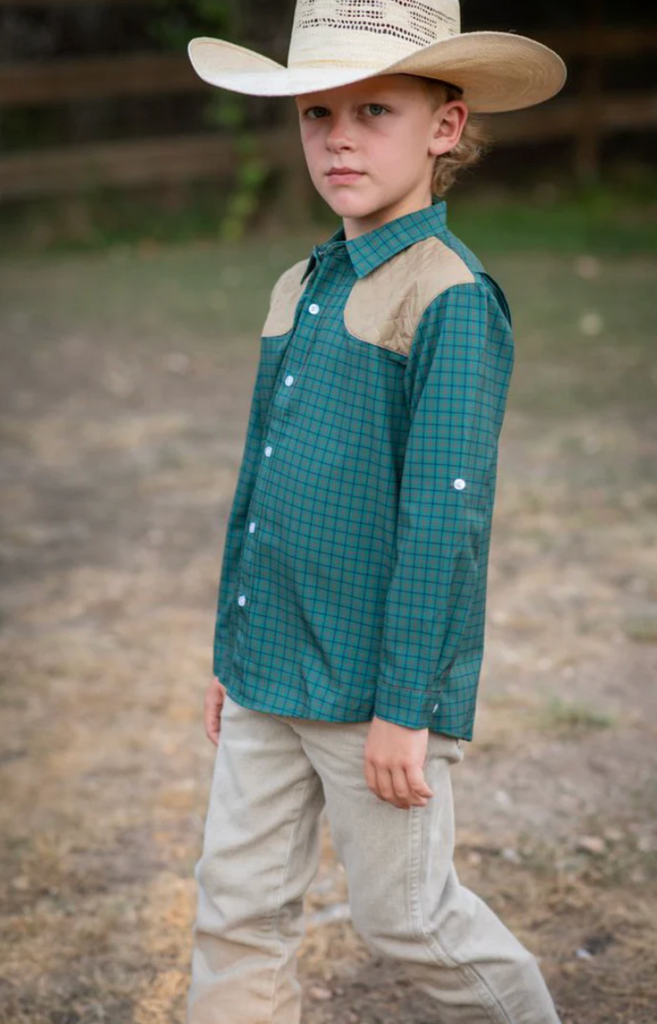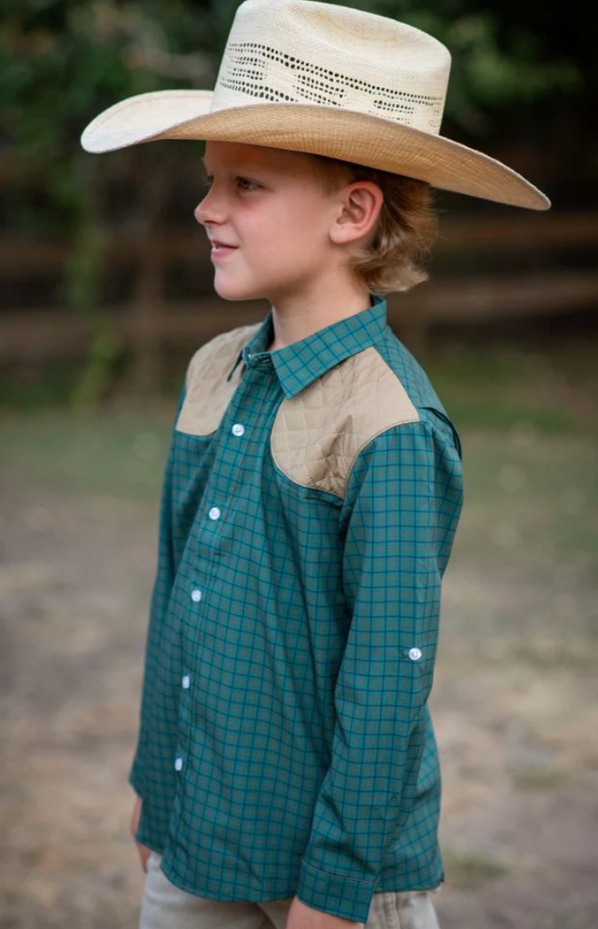 Whether you're spending a weekend at the ranch or an evening at the rodeo, our Ranch Collection offers the perfect blend of style and performance. Made from UPF50+ stretch fabric for all-day comfort, these shirts feature built-in shoulder patches for added durability — ready for whatever the day brings.