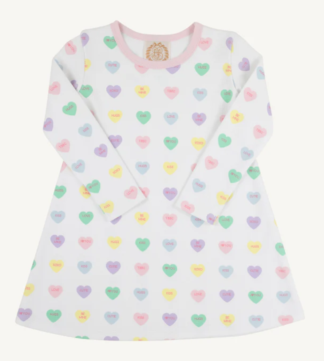 Watch her twirl in the Long Sleeve Polly Play Dress in We Heart You with Palm Beach Pink. The sweet heart print and long sleeves make this girls' dress a year-round winner for school, playdates, and everything in between. Durable enough to keep up with her busiest days yet soft enough for all-day wear, it's the dress that proves style and comfort can absolutely go hand in hand.