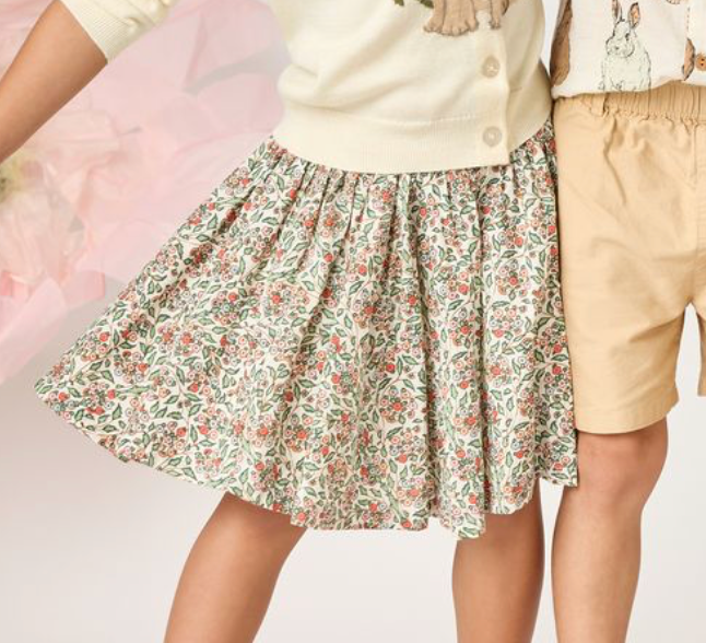 A twirl ready spring staple! The Girls Gianna Skirt features our yarrow floral print in lightweight 100% cotton poplin. Designed with a comfy elastic waistband and finished with pink purl stitching at the waist, this pull on skirt is perfect for mixing and matching all season long.