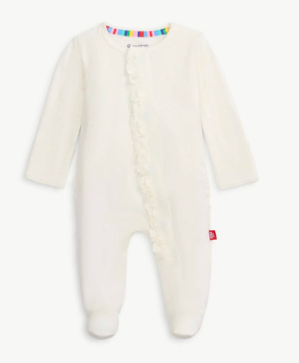 Magnetic Footie, designed with magnetic closures, is a quick and quiet lifesaver for all-day and middle-of-the-night diaper changes—that's up to 12 times a day (!). Made from sustainable modal, it's a silky-soft and temperature-regulating sleeper to keep your little one comfy from head to toe.