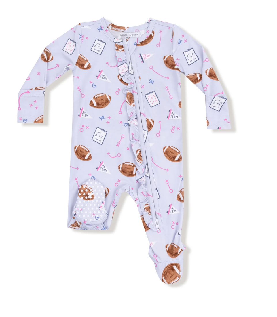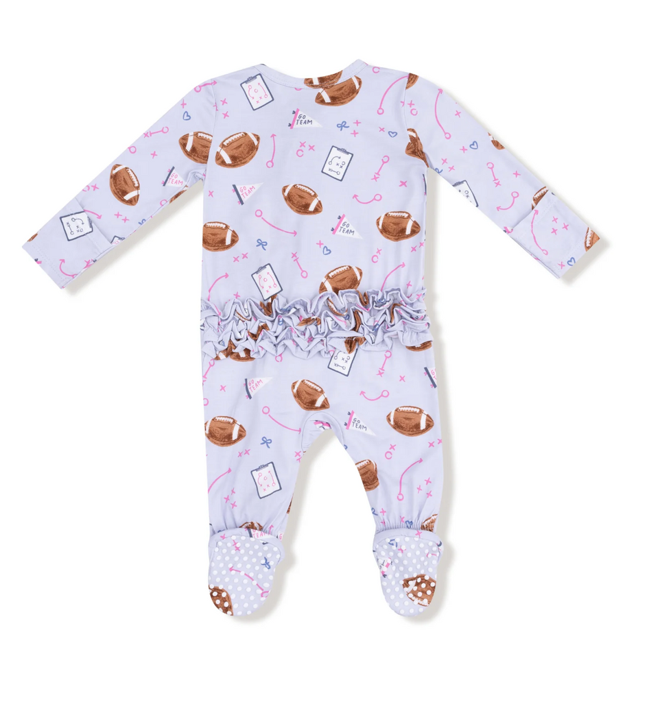 Dress your little one in effortless charm with our Ruffle Front 2-Way Zipper Footie. Crafted from buttery-soft viscose from bamboo, this footie is designed for ultimate comfort and easy changes. The delicate ruffle front detail adds a playful, elegant touch, making it a perfect choice for naptime, playtime, or anytime.