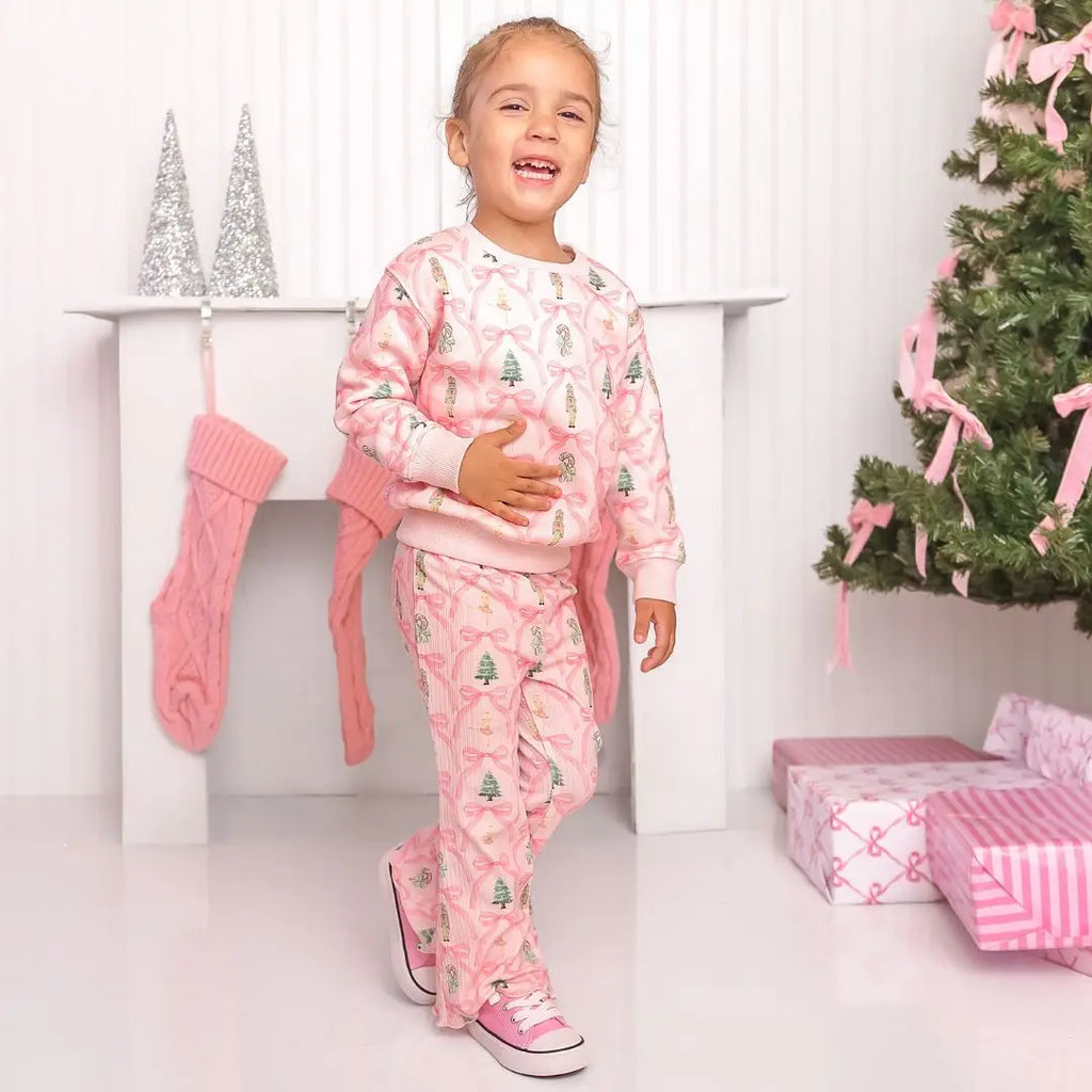 The Nutcracker Trellis Christmas Flare Legging is the perfect pair of leggings for celebrating Christmas ! Features: *Legging Color: Ballet Pink *Graphic Color: Multicolor *Material: 64.8% Polyester/ 27.7% Rayon/ 7.5% Spandex *Features: Tagless inside label for an itch-free wear *Fit: Toddler Unisex; True to Size *Care: Machine wash cold inside out, only non-chlorine bleach, tumble dry low, do not iron on decoration, do not dry clean Each pair of leggings is packed with love in our hometown warehouse.