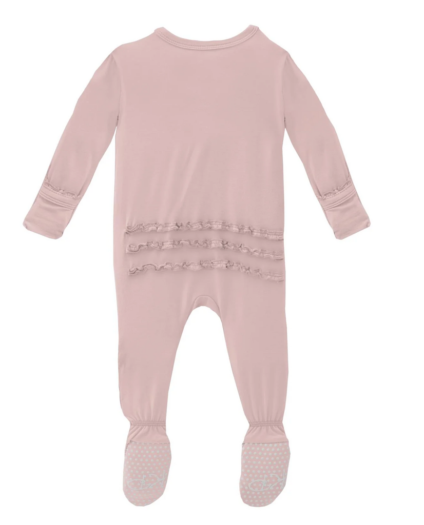 Good news! Our beloved Ruffle Footie now comes with a zipper! All the same comfy, ruffly goodness, with the ease of a zipper for quick changes. Our sweet fitted Footies feature flip 'paws' to cover chilly hands and prevent scratching. The inside of the foot is lined with super soft fleece and the bottom has no-slip grips! You will love to cuddle with your baby in our super soft Viscose from Bamboo fabric, and baby will stay warm and dry!