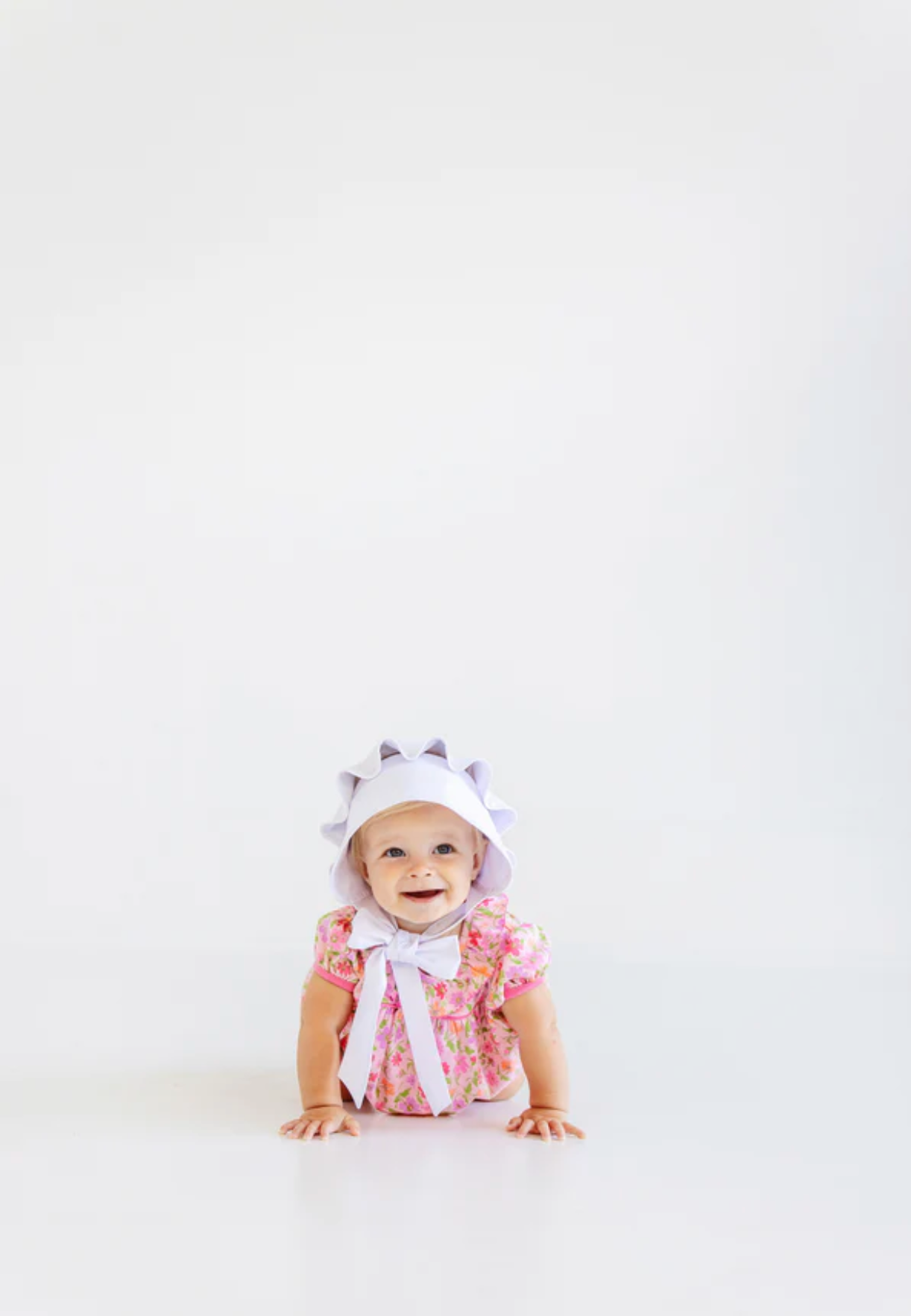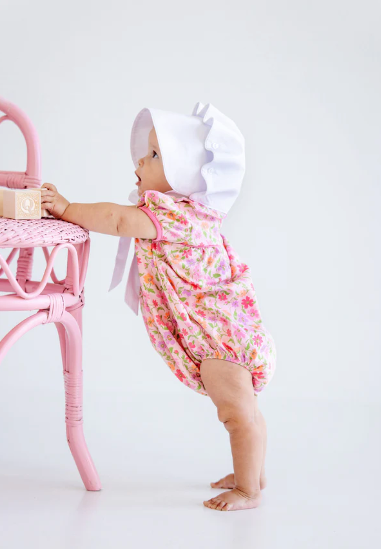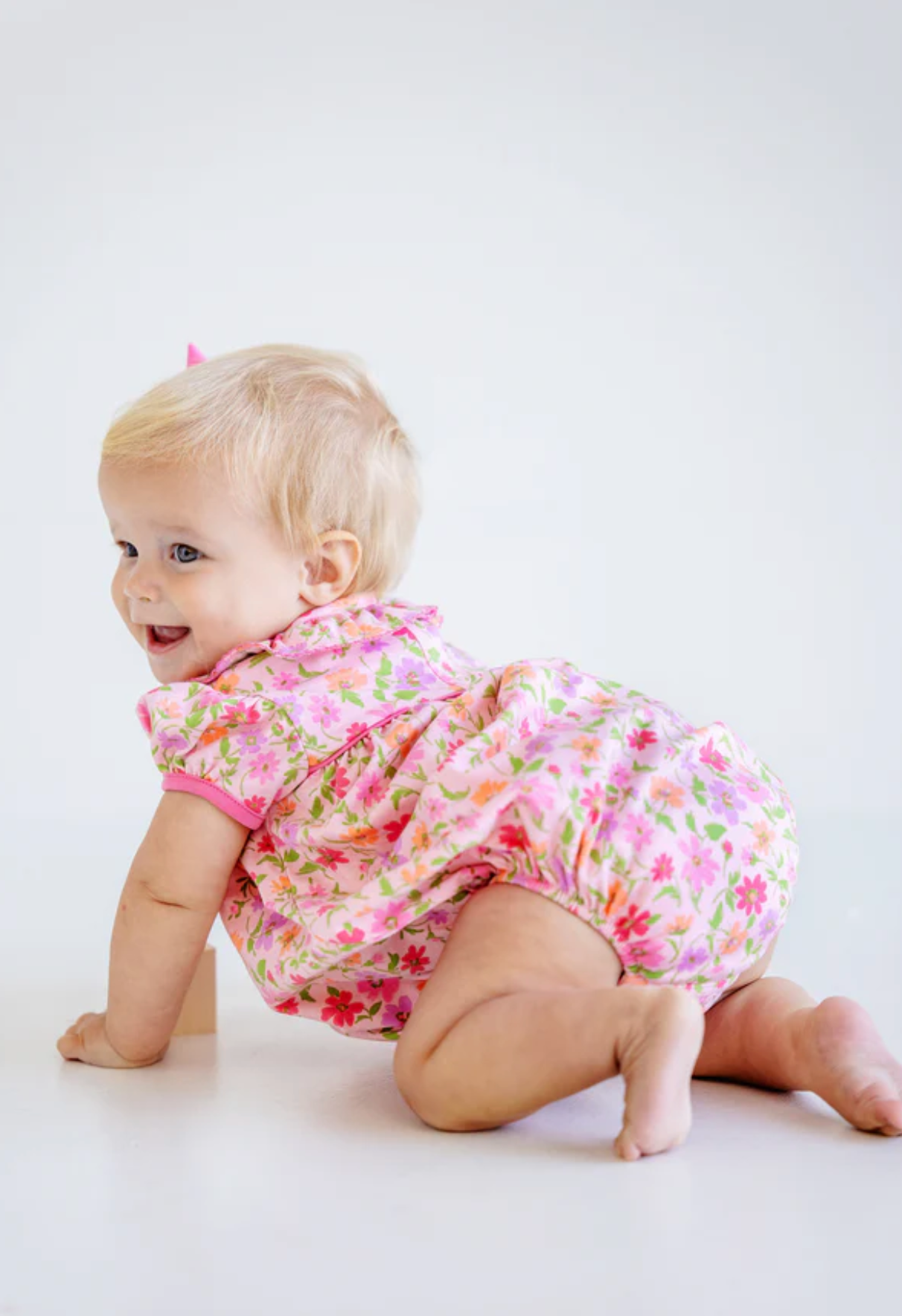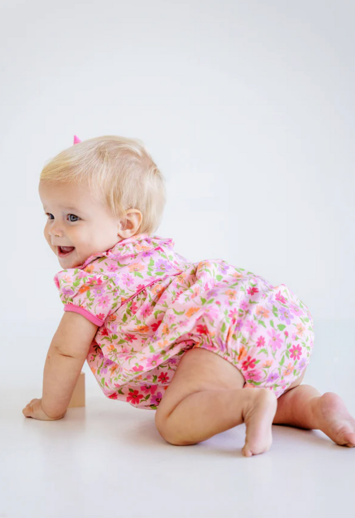 Our Ramona Ruffle Collar Bubble is perfect for play! Featuring Grand Cayman Gardens with Romany Rose, your little one will look oh so precious in this piece!