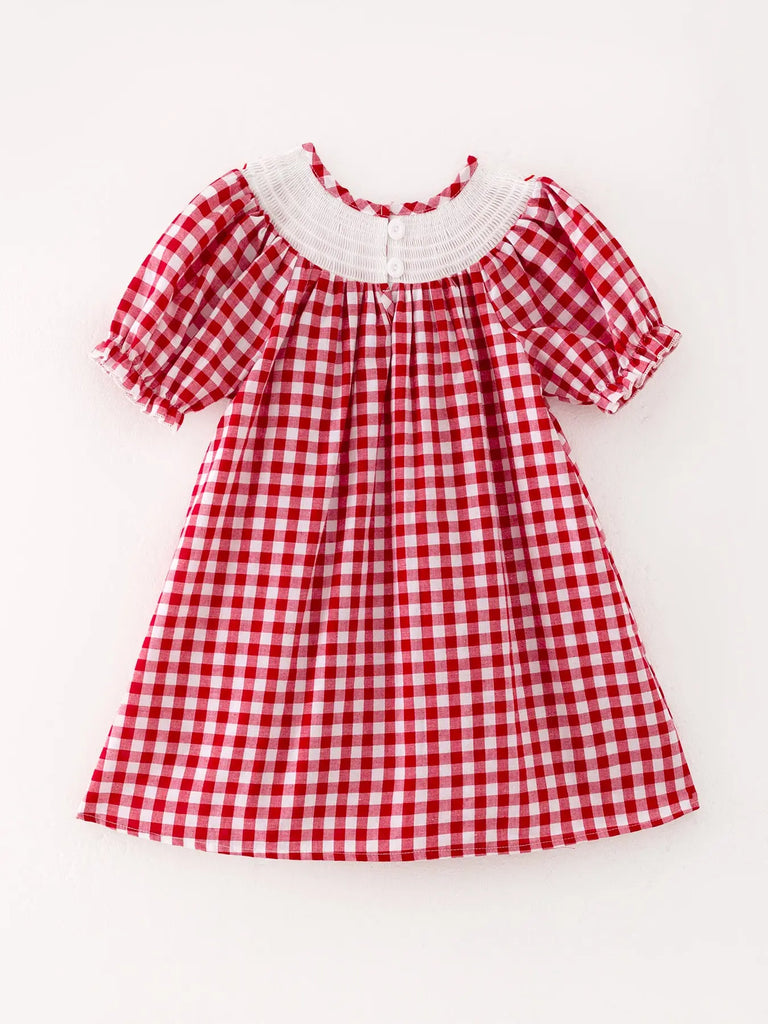 This festive dress features delicate smocking and embroidery of charming Christmas trees, perfect for creating memories and spreading cheer.