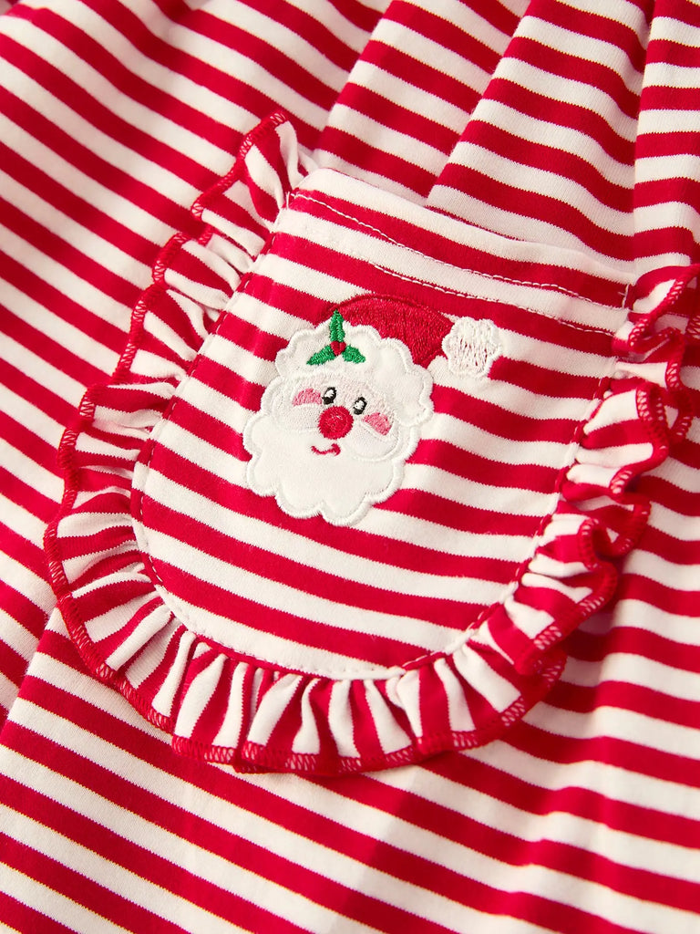 Celebrate the holiday season in style with this Christmas Red Stripe Dress featuring charming Santa applique pockets. Its festive design adds playful cheer to your wardrobe, while the comfortable fit ensures you stay relaxed during all your seasonal gatherings. Perfect for spreading joy at parties or casual holiday outings, this dress combines fun and festive flair effortlessly. SKU:DRG55004 97% Cotton,3%Spandex