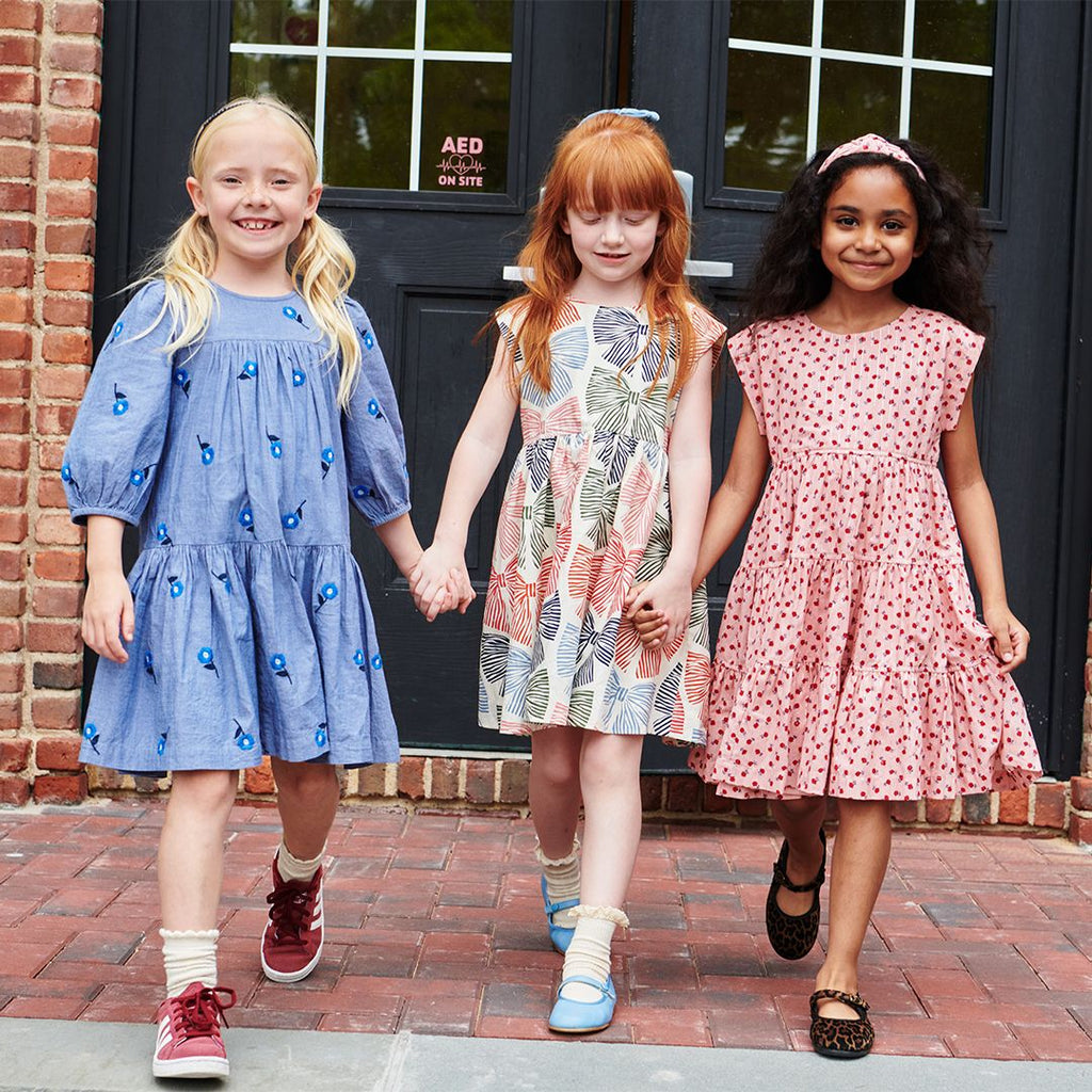 Bounty Of Bows! Our sweetly sophisticated Girls Adaline Dress in Multi Striped Bows features a fully gathered skirt, crisp cap sleeve and silver glitter buttons at the back. Match back to Baby Sis in our Baby Girls Adaline Dress Set.