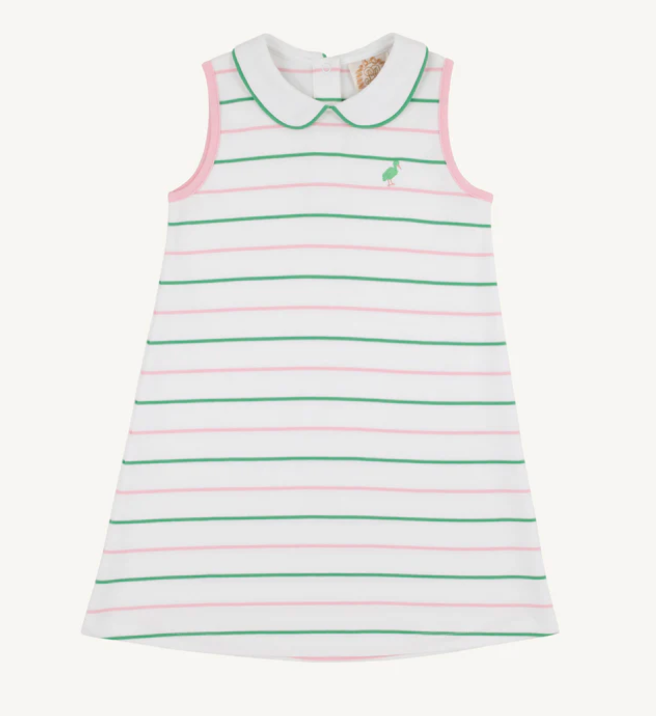 Timeless charm takes center stage in our Sleeveless Maude's Peter Pan Collar Dress, where the beloved Tradd St. Stripe pattern meets sweet Pier Party Pink accents and a darling peter pan collar. The airy sleeveless design makes this dress a warm-weather hero, while the classic silhouette ensures she looks polished from morning until night. A go-to choice for everything from school photos to Sunday brunch that never goes out of style.