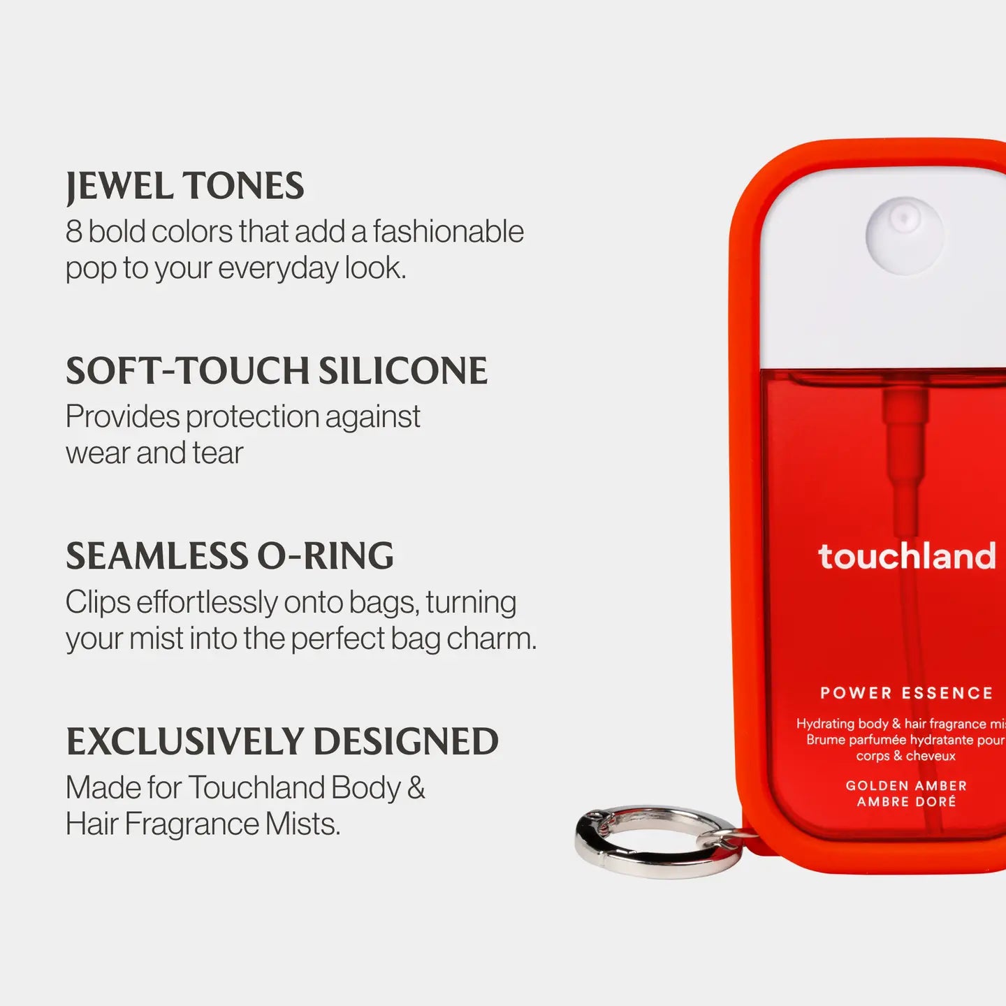 DELIGHT IN THE DETAILS: - Jewel tones – 8 bold colors that add a fashionable pop to your everyday look. - Soft-touch silicone – Stylish, durable, and smooth to the touch. - Seamless O-ring – Keeps your Touchland hand sanitizer always within easy reach. - Exclusively designed – Made for Touchland Body & Hair Fragrance Mist 2 FL. OZ. (60mL)