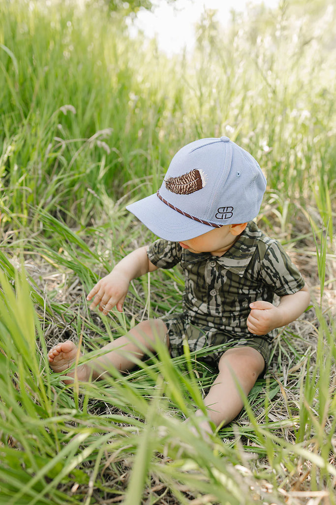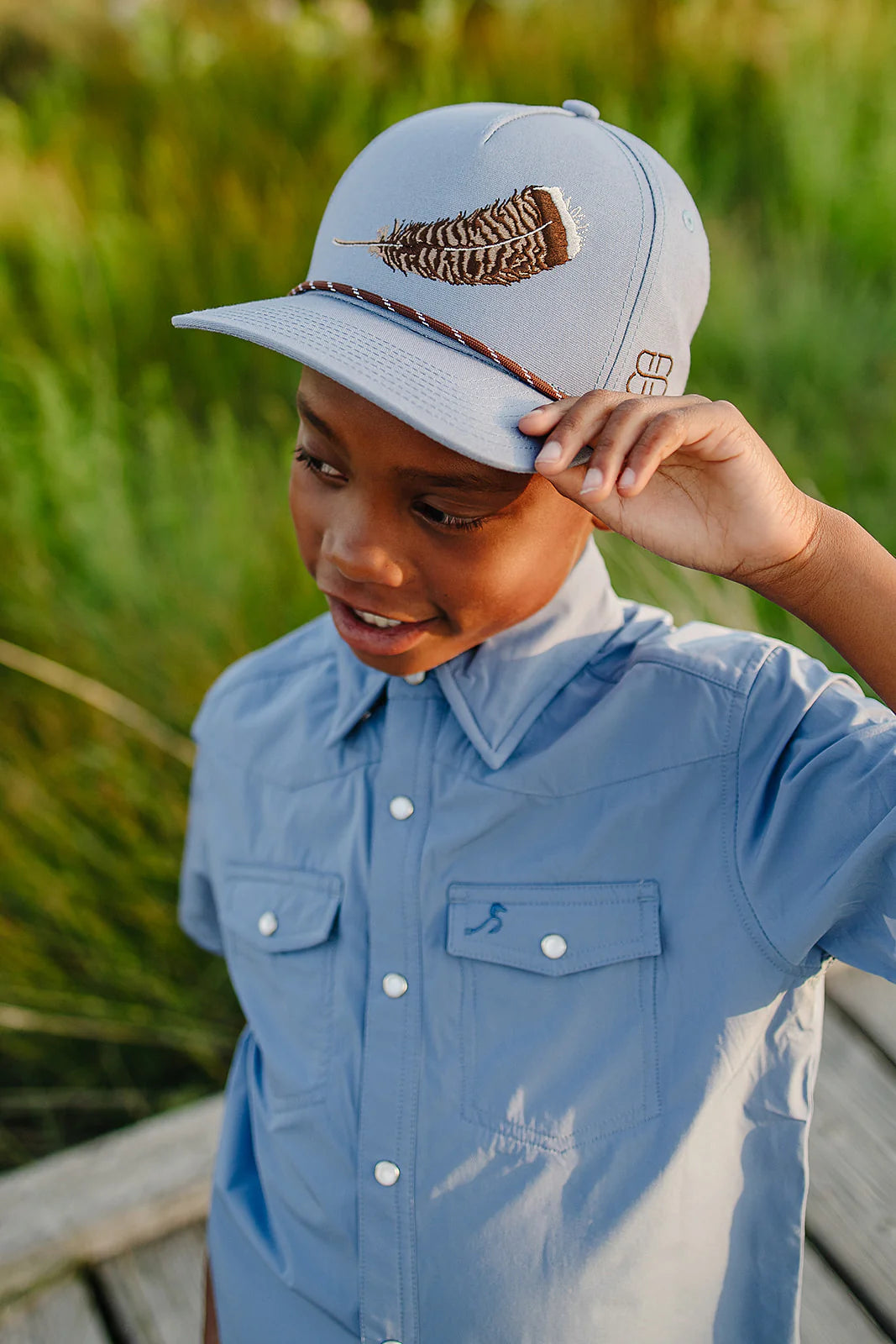 Explore in style with our 'mallard sky' floating flat brim hat! Perfect for outdoor enthusiasts!