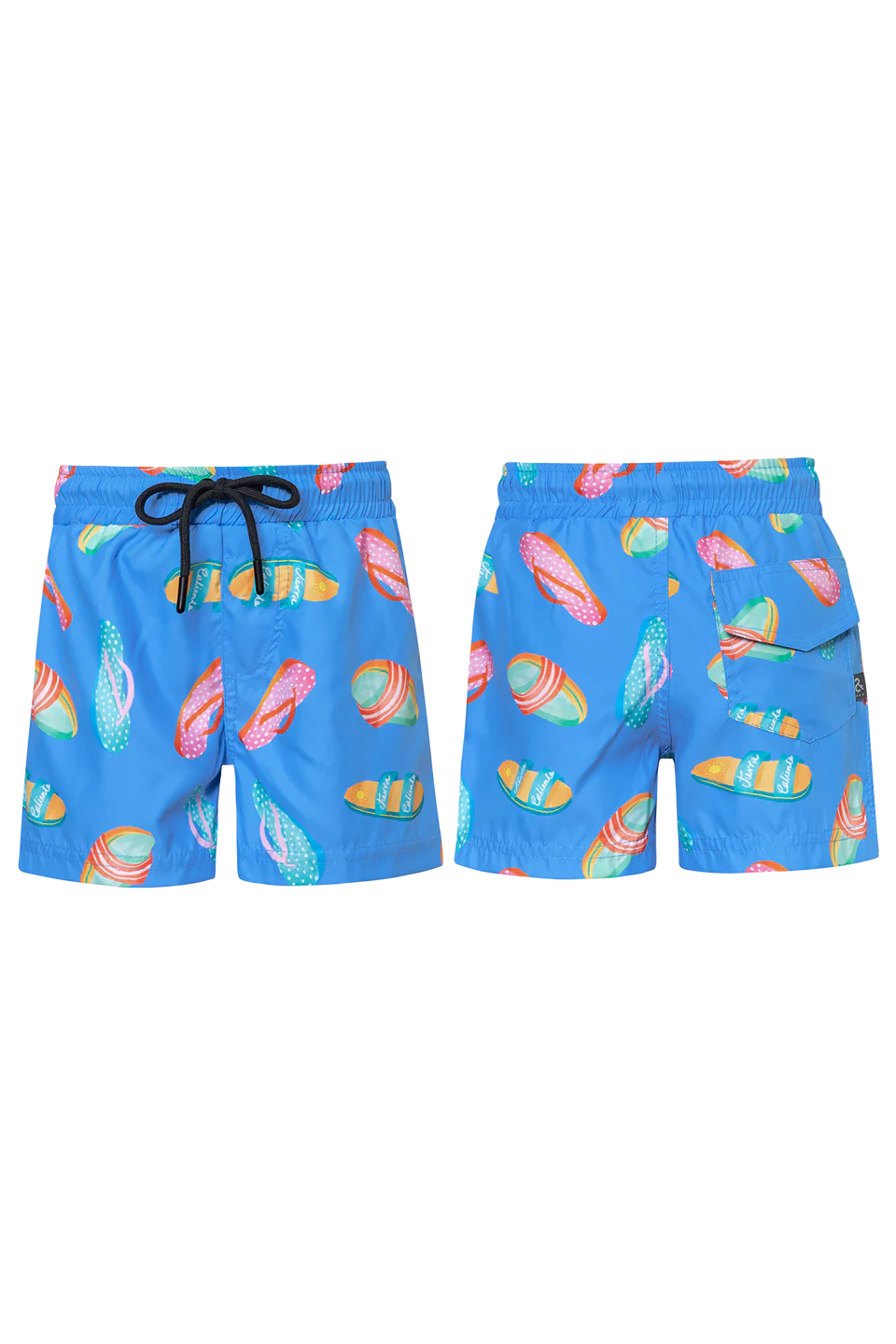 Boys swimshorts with drawstring, elastic waist, inner lining with no holes (not mesh) and back pocket. Made in Colombia