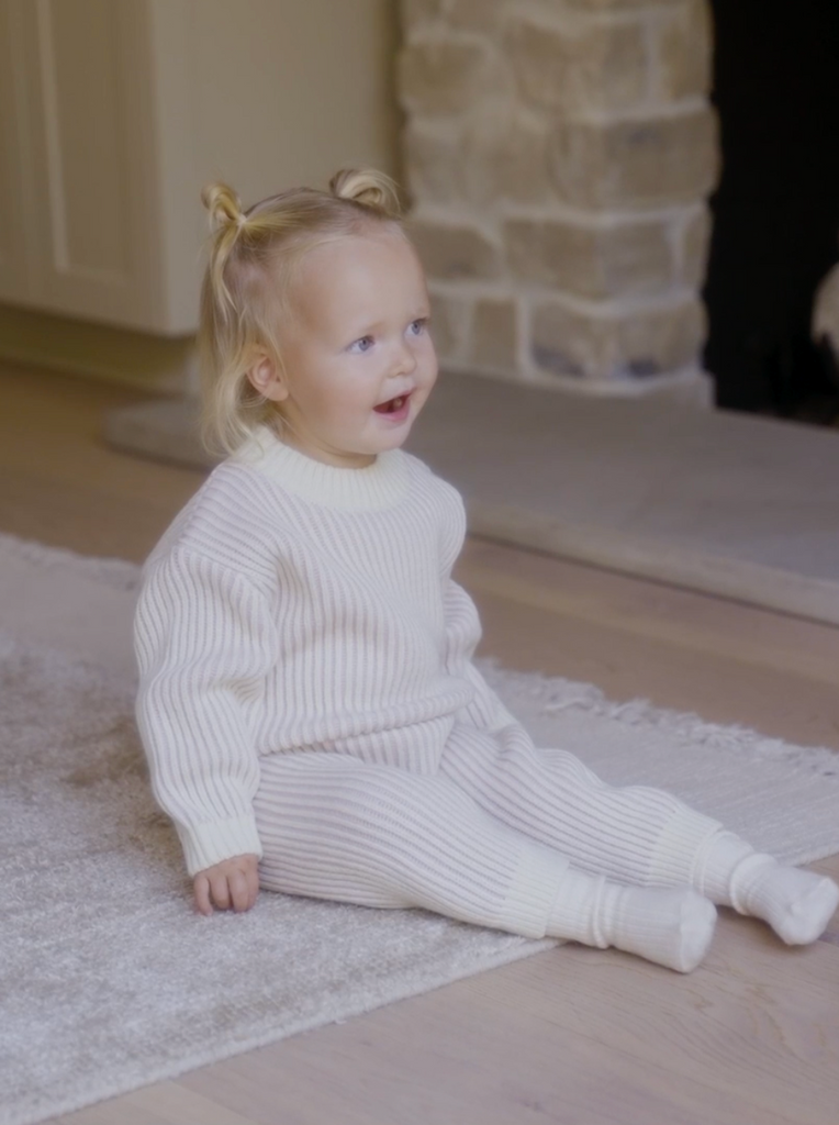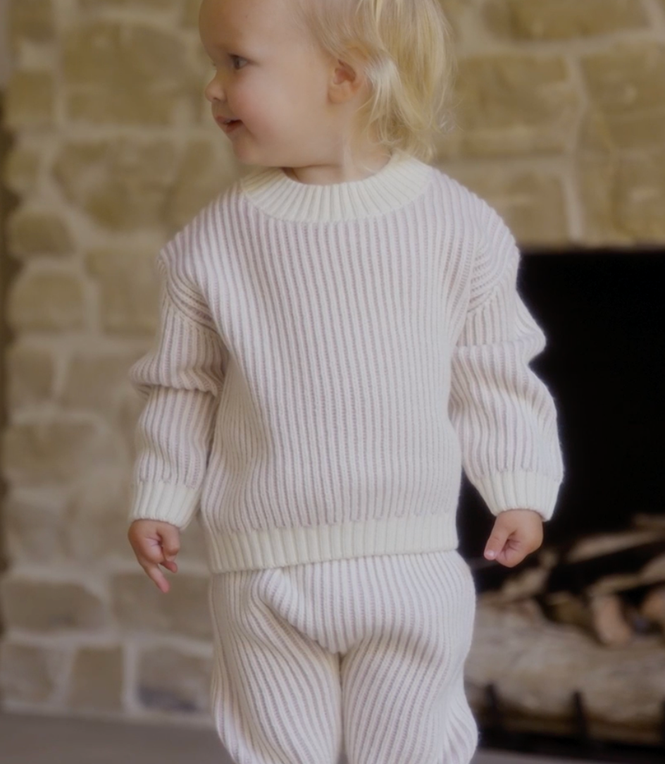 Chunky Knit Pants with contrast ribbing and fixed front tie detail—pairs perfectly with our Relaxed Knit Sweater.