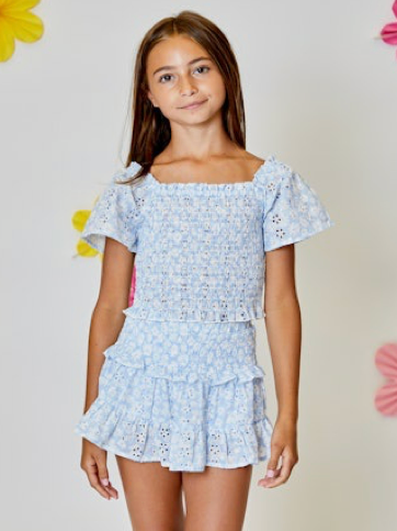 Floral Skort Set | Light Blue