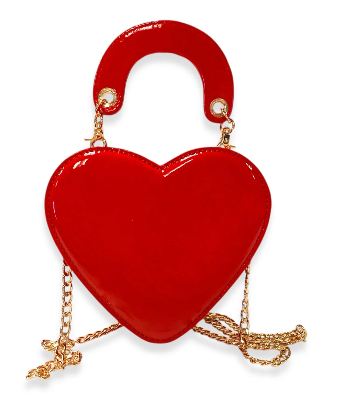 This unique heart shaped purse is available in three lovely colors! Comes with a detachable gold chain to make this the perfect crossbody bag.