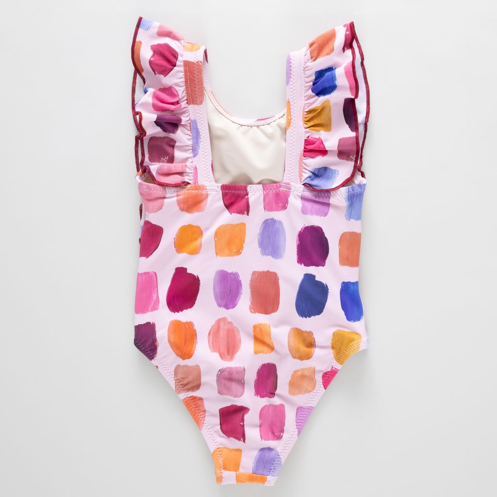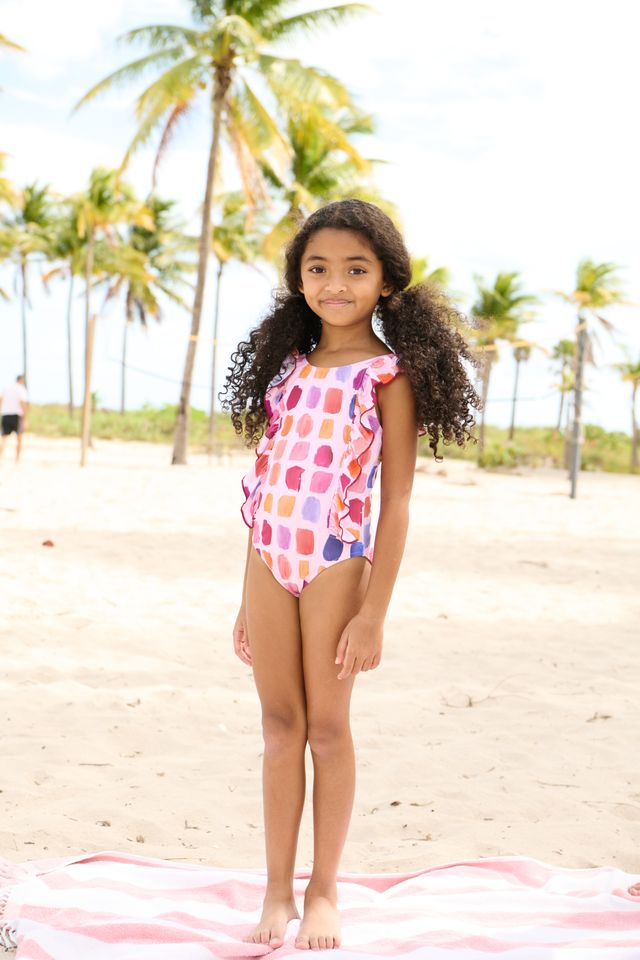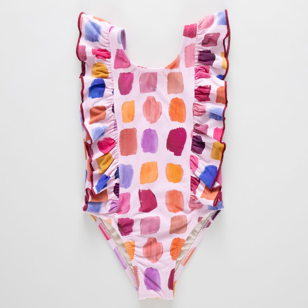 Artful and playful, the Katniss Suit features ruffles that cascade from the top of the straps down the sides for a dramatic, movement-filled silhouette. Red berry pearl stitching trims the ruffle edges, adding a bold finishing touch to this standout one-piece.