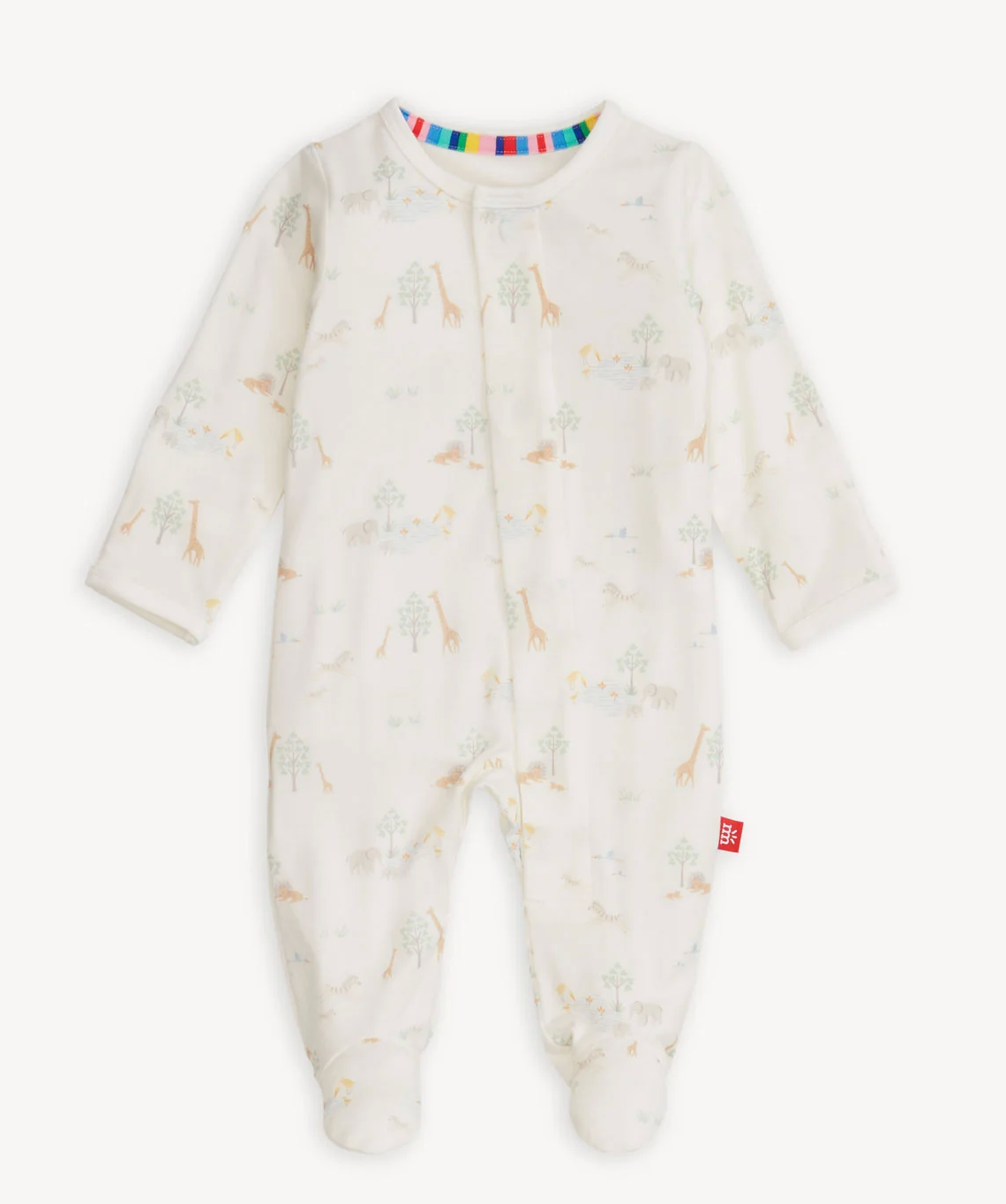 Our modal Magnetic Footie, designed with magnetic closures, is a quick and quiet lifesaver for all-day and middle-of-the-night diaper changes—that's up to 12 times a day (!). Made from sustainable modal, it's a silky-soft and temperature-regulating sleeper to keep your little one comfy from head to toe.