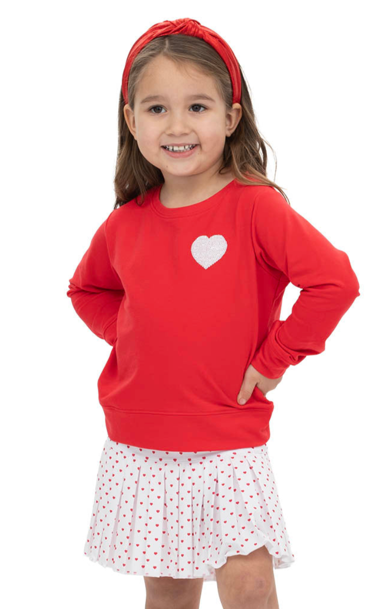 This bright red heart tee is a simple-sweet staple for Valentine’s season and beyond. Designed with a classic crew neckline and relaxed fit, it features a soft white heart detail over the chest for just the right touch of love. Easy to style with skirts, denim, or leggings, it’s perfect for school days, parties, and everyday wear.