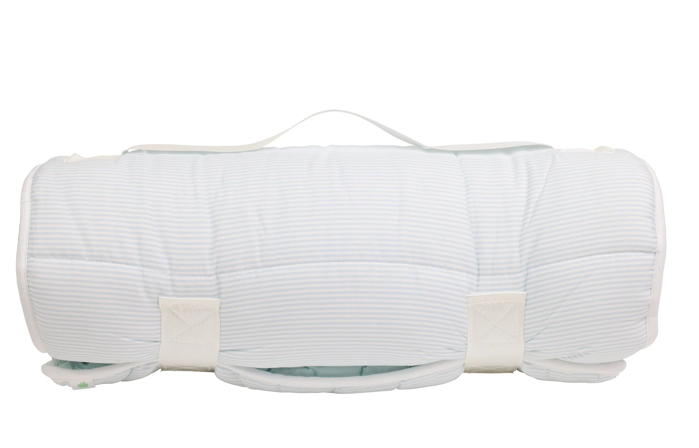 Have no fear about your child sleeping on the ground at school - The Nap Mat is pure luxury! Made from cotton with soft bamboo pillowcase and blanket inside, and poly fill throughout. Plush and comfortable, your toddler is sure to get great rest. Shoulder strap is two inches wide to allow plenty of room for embroidery.