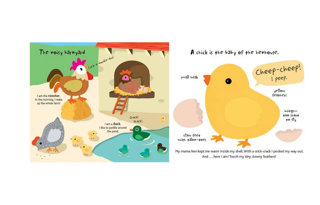- A splashy treat for visual learners and pre-readers, kids can discover the facts, feel, and functions of over one dozen farm animals